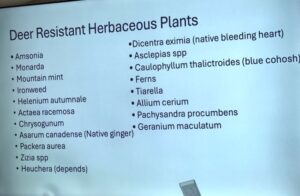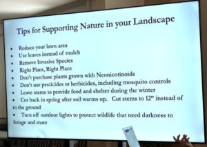 During our February meeting; Lili Morss talked about the BIG IDEA…overall considerations for thinking about your landscape. Charity Trembley shared tips about gardening throughout the year…what happens when. Marty Wallace rounded out the meeting out by sharing how gardening supports the natural world. See some of the slides with ideas from the presentations.