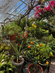 On February 27, 2026, a group traveled to Waltham,MA to tour the Lyman Estate Greenhouses, a bit of respite from the cold winter days. We were guided by horticulturist Lynn Ackerman, the greenhouse manager for 37 years. The Lyman Estate was built by wealthy Boston merchant Theodore Lyman with a series of greenhouses, looking to Europe for design inspiration. The family used the property as a summer residence for 150 years, growing to about 400 acres at its peak. It stayed in the family for four generations, until the 1950’s when Historic New England acquired the property and preserved the estate. There are still some family members remaining today, with Stephen Parsons as one of the most recognized at age 103 years old.